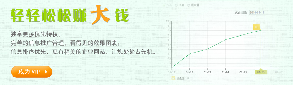 - 获得特有VIP认证,信息在列表页和详细页均显示网VIP标识,能吸引浏览者注意,更得用户信赖